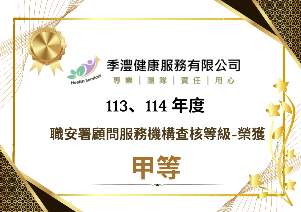 【賀】季灃連續二年榮獲職安署-勞工健康顧問服務類之顧問機構實地查核『甲等』等級